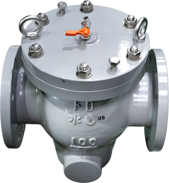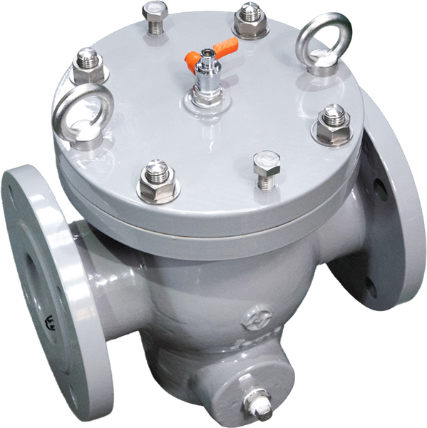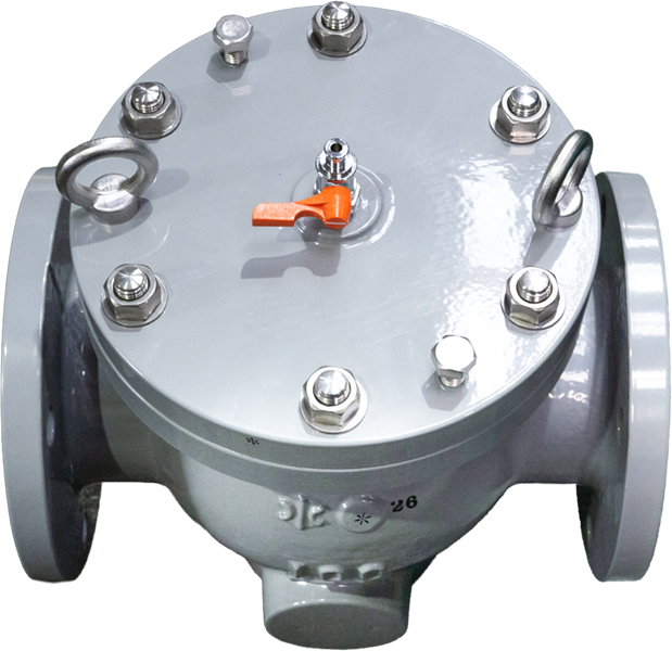 1. ストレーナに付いた異物は、水を止める事なく、上部ハンドル操作にて本体底部の排水バルブより放出する事ができます。 2. 通水断面積が大きく、流路がスムーズで圧力損失を少なくしています。 |