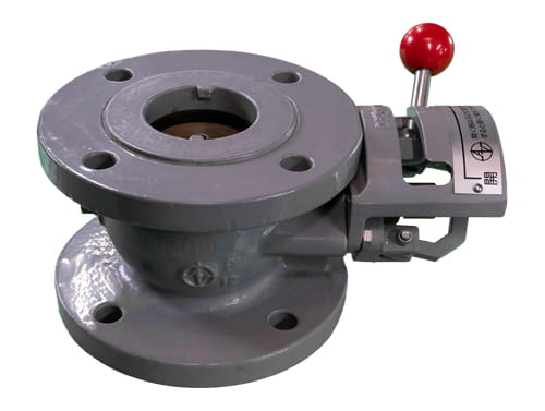 1. 弁体に等圧孔を設けてあり、操作レバーのワンタッチ操作で上流側圧力を下流側に導き等圧にして弁の開閉をするため、軽快な操作ができます。 2. 操作レバーは、コ字状の案内溝内を動くため、無理な力をかけずに開閉でき、案内溝の両側のいずれかにある場合には、全開または全閉の位置にロックされています。 3. 弁座は、上流側圧力を利用したセルフシール方式を採用しているため、使用圧力に関係なくシールが確実であるとともに、開閉操作時には弁座の内外がほぼ等しい圧力になり、シーティングトルクが減少し、弁座の摩擦が抑制されます。 4. 偏心形半球式回転弁の為、全開時には弁体は弁箱の側面に回転移動し流路を防ぐ事はありません。 |
